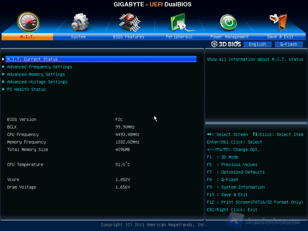 Una volta riavviato il sistema se entriamo nuovamente nel bios troviamo un riassunto delle impostazioni, notiamo i 4495Mhz dati dal bus @default di 100MHz e dal moltiplicatore impostato a 45.