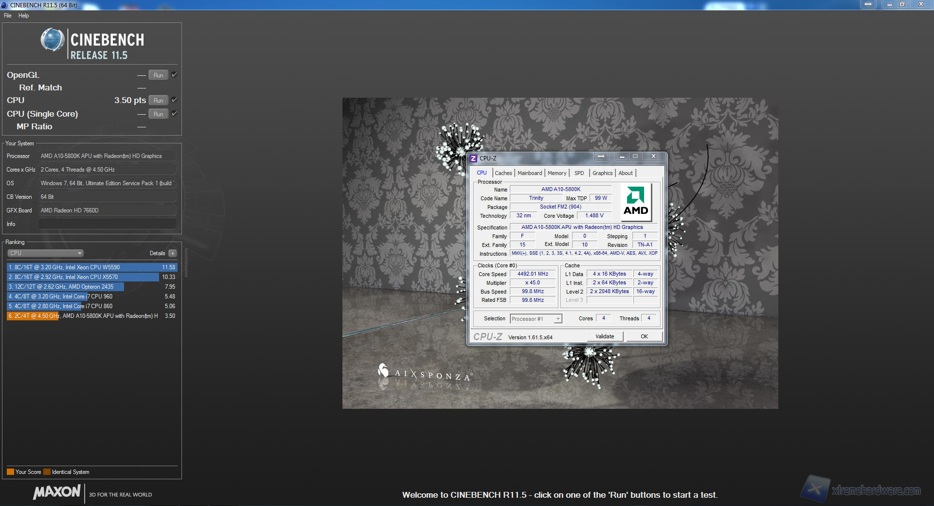 Siamo riusciti a portare la frequenza dell'A10-5800K a 4600MHz ma, nonostante si riesca ad entrare in Windows, il sistema non riesce a finire Cinebench 11.5 crashando prima.